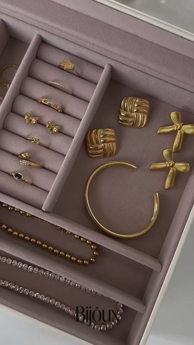 Nos bijoux sont fabriqués en acier inoxydable de haute qualité, recouverts d’or 18 carats grâce à la technologie exclusive PVD. Cette technologie moderne crée une finition dix fois plus épaisse et extrêmement durable. ✨